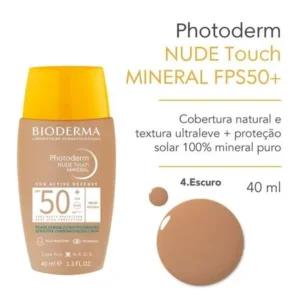 Photoderm Nude Touch FPS 50+ é o 1º protetor solar 100% físico especialmente desenvolvido para peles oleosas. Sua fórmula bifásica oferece o melhor da fotoproteção 100% mineral, garantindo um verdadeiro escudo protetor fotoestável por 08h¹ mesmo em condições extremas², associado ao cuidado diário contra os sinais da pele oleosa. Dia após dia, Photoderm Nude Touch FPS 50+ reduz duradouramente a oleosidade através da patente Fluidactiv™; afina a textura da pele com a ação do ácido salicílico; e ainda previne o surgimento de cravos e espinhas, graças ao ativo capriloil glicina. Textura inovadora: Fórmula bifásica que associa filtros e pigmentos 100% minerais à fase líquida, reunindo o melhor da fotoproteção 100% física ao cuidado antioleosidade diário. Benefícios: Ao agitar, ambas fases se unem para criar uma textura ultra leve e fluida com espalhabilidade perfeita, cobertura natural e toque aveludado que não pesa e não derrete ao longo do dia. Aplique a partir de 8 gotas para garantir os 8 benefícios de Photoderm Nude Touch.